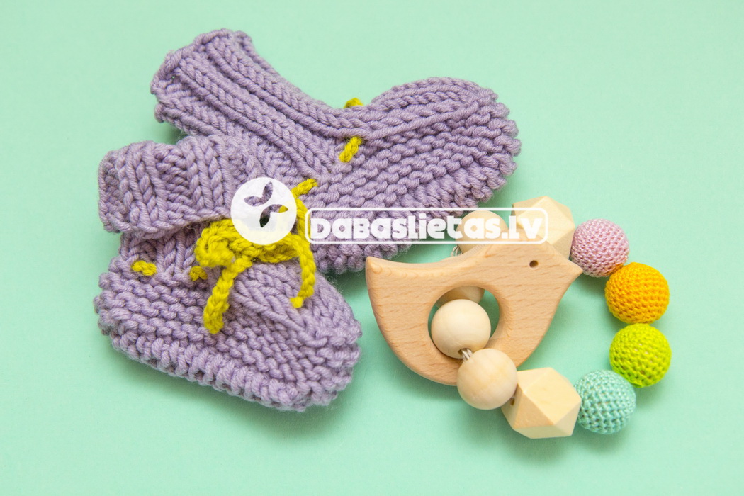 Gatava dāvana raudzībās. Pirmais pūriņš jaundzimušajam. Graužamriņķa krāsas pieskaņosim adīto zābaciņu krāsai.