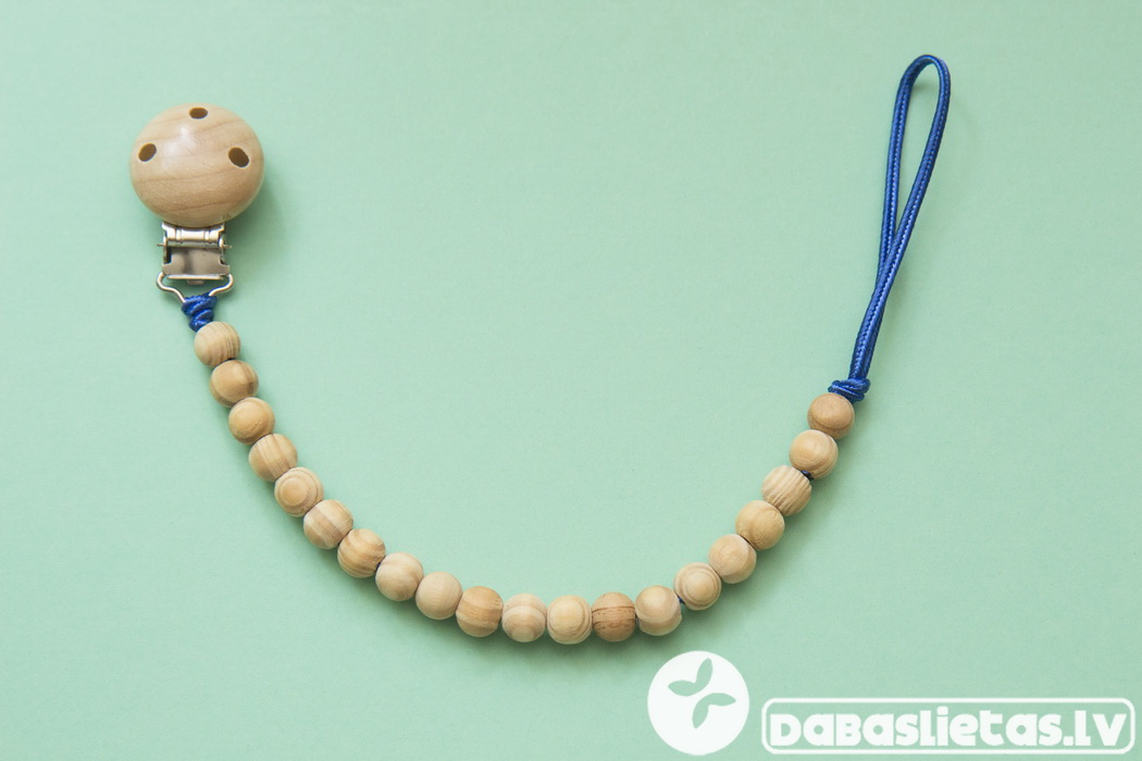 Koka knupīša, jeb māneklīša turētājs izgatavots no ekoloģiskām neapstrādāta kļavas koka pērlītēm ievērojot drošu garumu. Piemērots mazuļiem no dzimšanas.