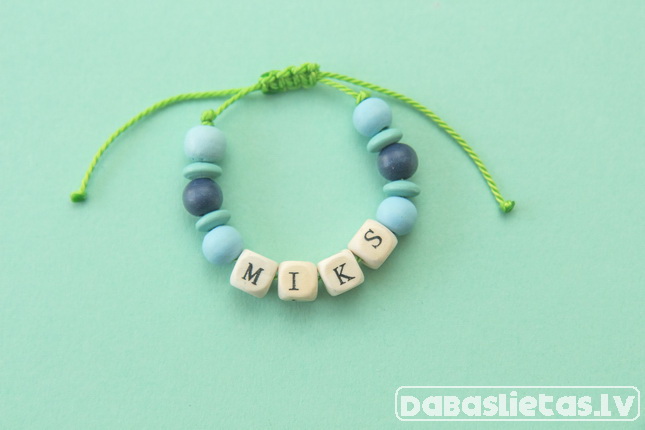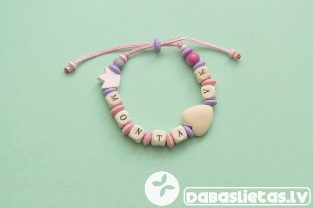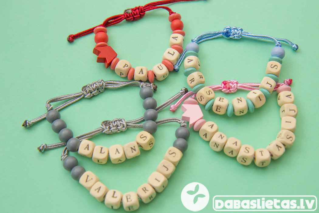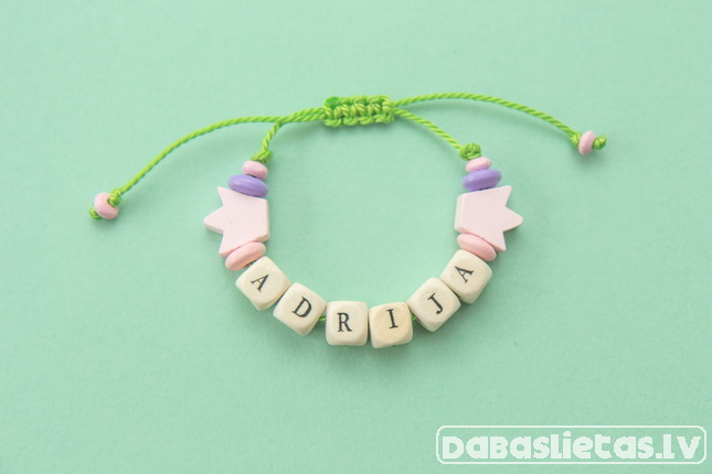 Skaista rokassprādze bērnam, kas palīdzēs ātrāk apgūt sava vārdiņa rakstību.