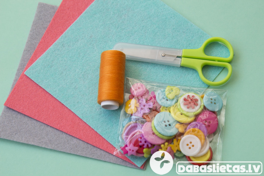 *Dažādu formu, krāsainas pogas;